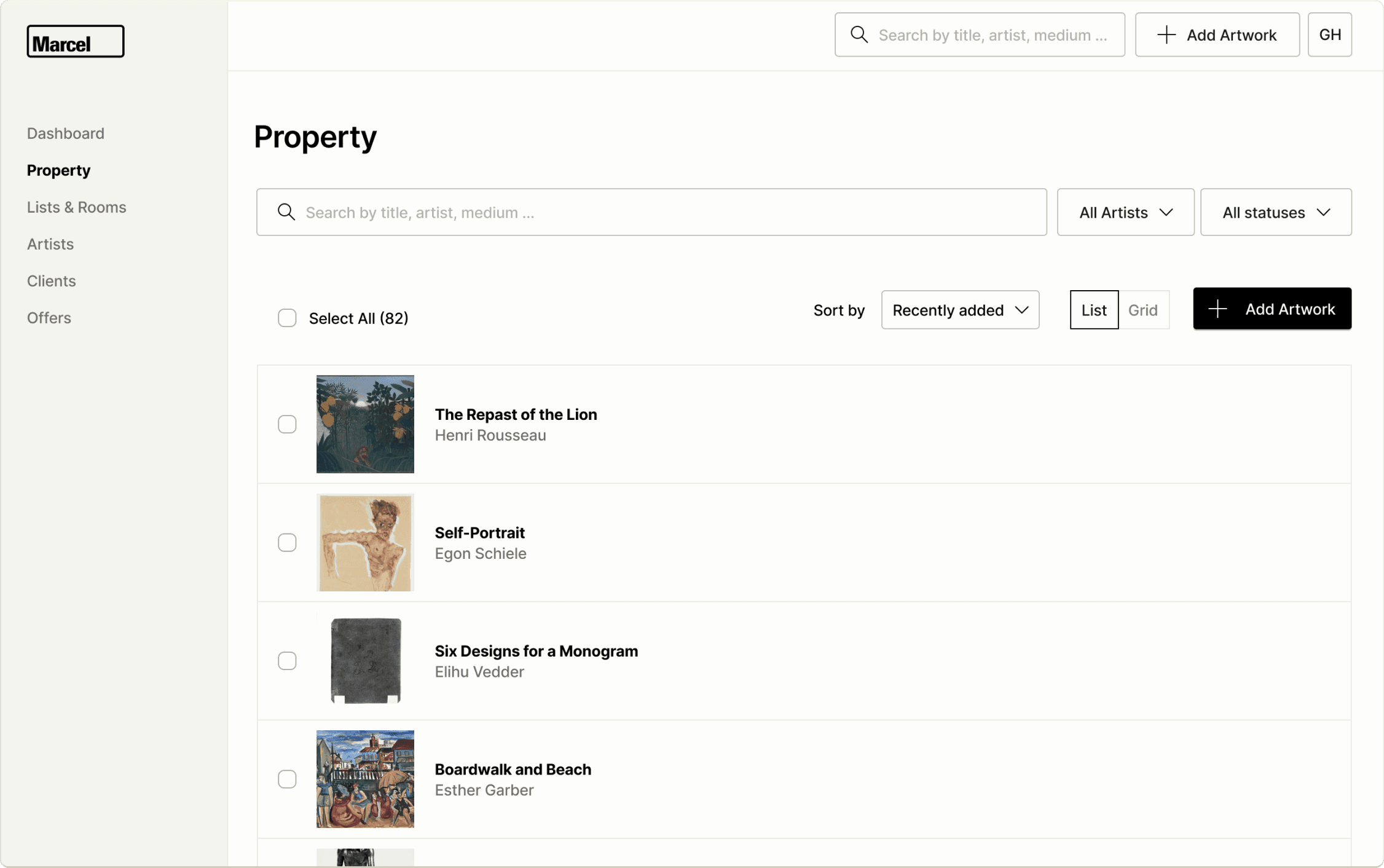 Marcel lets galleries manage their artworks and run their business on a simple, robust platform.